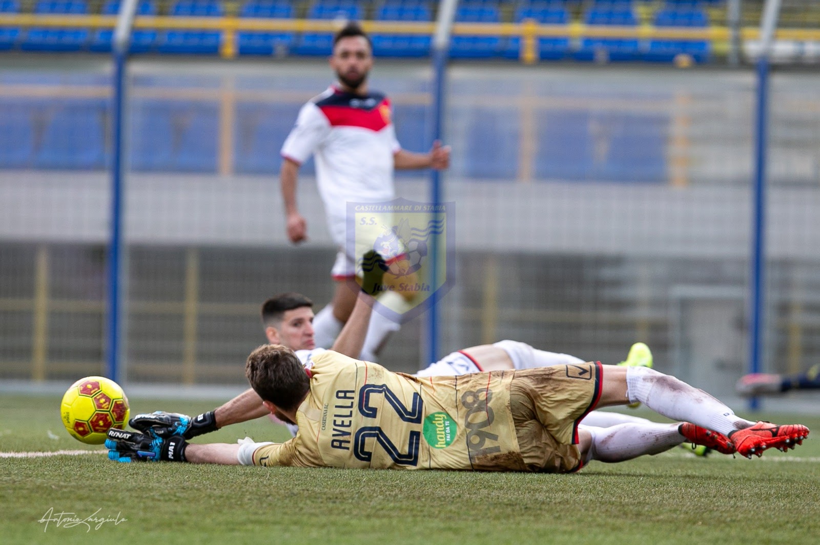 Mister Padalino opta per vari cambi per dare la scossa alla squadra e nel finale getta nella mischia anche la punta Ripa. I gialloblù si scoprono e Castaldo, che al 22′ aveva già sfiorato il raddoppio con un colpo di testa respinto sulla linea da Berardocco, li castiga nel recupero con il classico gol ex spingendo in rete un cross da destra con la retroguardia stabiese in ambasce.