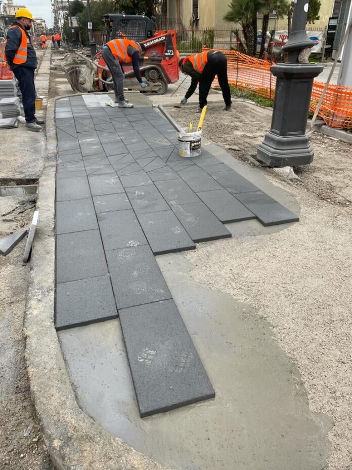 Nel primo tratto interessato dai lavori è già iniziata la realizzazione e la pavimentazione dei nuovi marciapiedi.