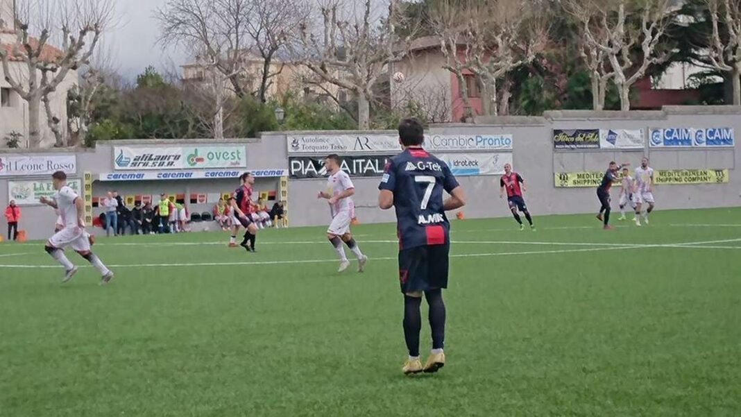 Il raddoppio rossoblù si concretizza al 44’ con un colpo di testa di Corado al centro dell’area che termina in fondo alla rete dopo il tocco di Scarano e del palo. Il primo tempo termina con gli ospiti avanti di due reti e padroni del campo e della gara. La ripresa si apre con la rabbiosa e velleitaria reazione dei rossoneri ma poi i pugliesi calano il tris ed è notte fonda per i costieri. Al 65’ ci prova Procida da fuori area con un tiro a giro ma Ciezkowski para senza problemi. Dopo dieci minuti il tris è servito con Diaz che, servito da un traversone di Marsili dalla corsia sinistra, solo davanti a Scarano mette facilmente in porta e porta i pugliesi sul triplice vantaggio. La gara non vive più di nitidi sussulti e si protrae fino al termine del match con la netta sconfitta dei rossoneri che incassano un pesante ko e restano all’undicesimo posto in graduatoria a quota 24 punti e distanti appena cinque lunghezze dalla zona playout.