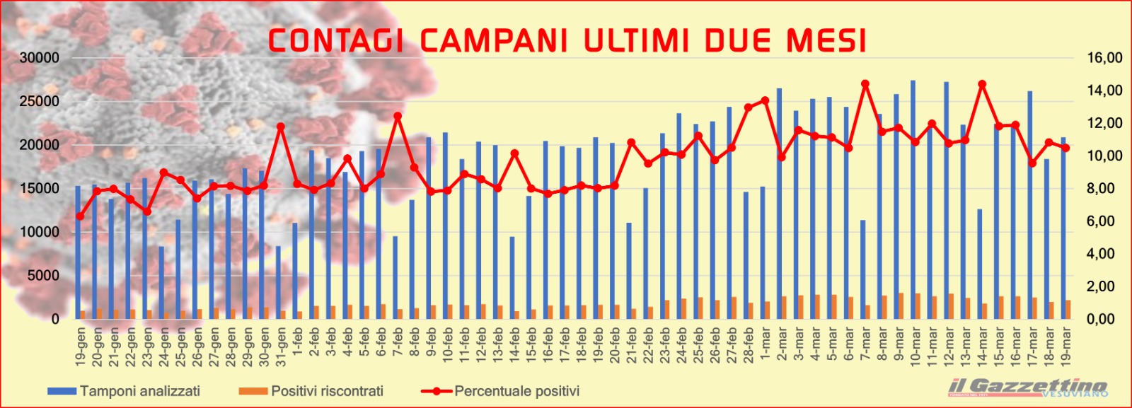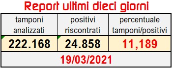 Venerdì 19 marzo –10,49% – 2.196 contagiati