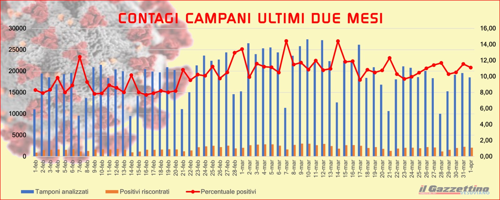 La Campania ieri, con 92.749 positivi attivi seconda regione in Italia dietro alla Lombardia (96.749), resterà in zona rossa anche dopo il 5 aprile, mentre scattano nuove misure in occasione della Pasqua.
