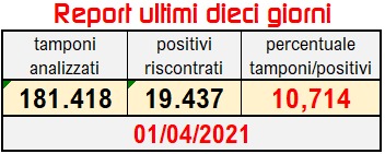 Mercoledì 31 marzo –11,55% – 2.258 contagiati