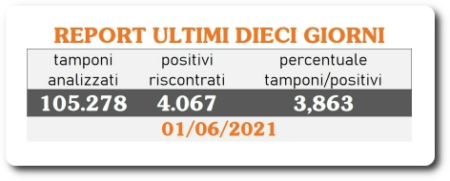 Indicato anche il numero dei tamponi antigenici rapidi effettuati, oggi 4.238, come sempre senza riportare alcun positivo.