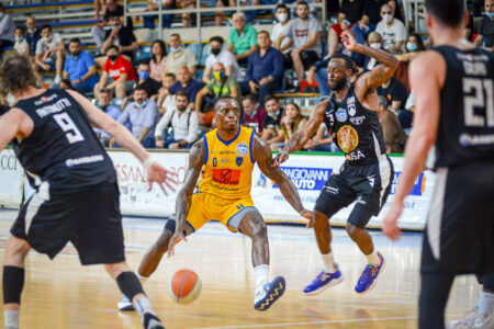 La sfida si riapre al 32’, quando i canestri di Amato e Foulland valgono il 61-57, punteggio che rimette in bilico l’esito finale della contesa. Si segna poco, complici gli errori di entrambi i quintetti, che appaiono logorati e stanchi (64-60 al 35’). Ai canestri dei due statunitensi gialloblù risponde Mian, che praticamente fa tutto da solo e rimette la sfida in parità 69-69 al 38’. Nonostante l’uscita di Thomas per raggiunto limite di falli, la sfida resta in parità fino alla sirena (73-73), che manda le squadre all’over time.