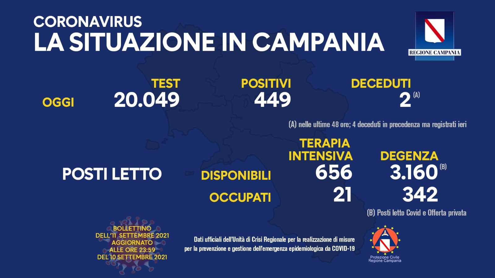 Il totale dei positivi è di 450.302 da inizio pandemia in Campania, mentre il totale dei tamponi eseguiti è arrivato a 6.302.167.