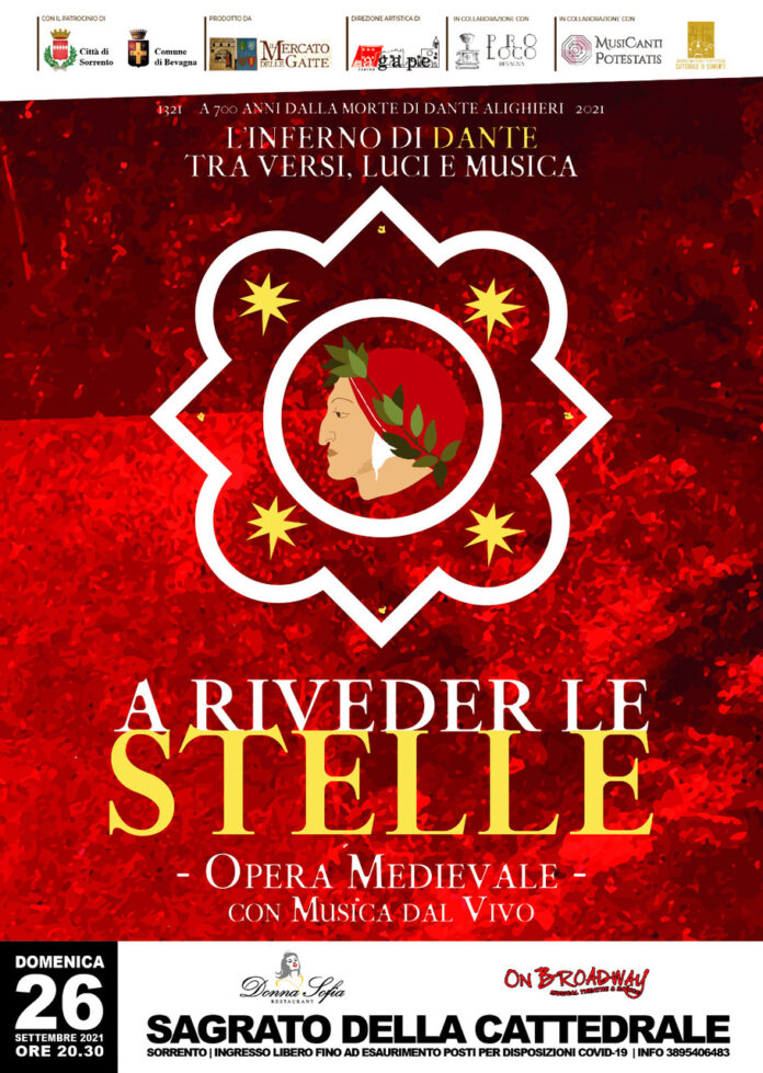 Domenica 26 settembre, alle ore 20.30 sul sagrato della cattedrale dei Santi Filippo e Giacomo, a Sorrento, si terrà lo spettacolo dal titolo “A riveder le stelle” per la regia di Davide Gasparrini.