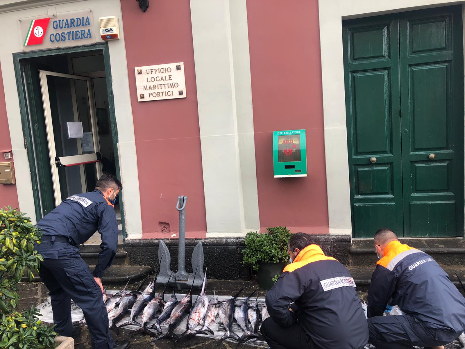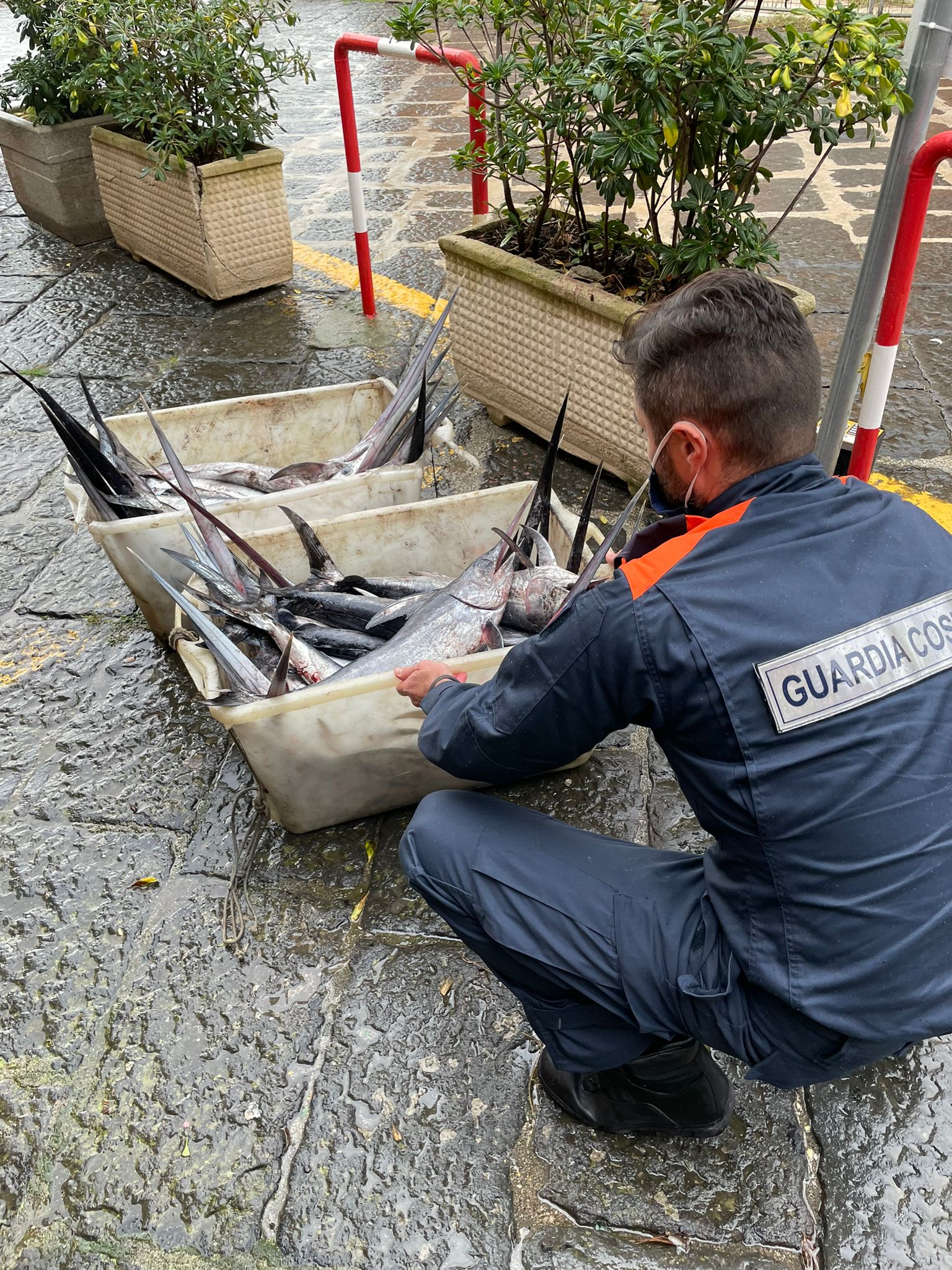 Nella mattinata odierna, personale della Guardia Costiera di Torre del Greco e del dipendente Ufficio Locale Marittimo di Portici, nell’ambito delle consuete ed istituzionali attività di vigilanza e controllo a tutela dell’ecosistema marino e delle filiere ittiche, sotto il coordinamento della Direzione Marittima della Campania, ha intercettato, sull’arenile in prossimità del “Lido Arturo”, nel tratto di giurisdizione del Comune di Ercolano (NA), un’attività di sbarco illegale di n. 30 esemplari di pesce spada, tutti al di sotto della taglia minima consentita, ai fini della cattura e della successiva commercializzazione.