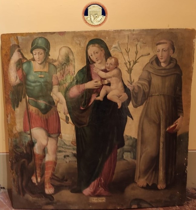 Si tratta di una pala d’altare a olio su tavola, delle dimensioni di 106×110 cm e risalente al 1555, asportata il 28 aprile 1979 dalla Chiesa di Santa Maria del Toro di Vico Equense. L’opera, messa all’incanto da una nota casa d’aste, è stata individuata e recuperata dal Nucleo TPC di Napoli, le cui attività investigative sono state coordinate dalla Procura della Repubblica di Firenze, nell’ambito di una specifica attività di contrasto alla commercializzazione di opere d’arte rubate.