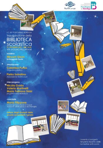 Martedì 21 dicembre 2021, alle ore 10.30, presso l’istituto comprensivo “Porchiano 83° Bordiga” sarà inaugurata la nuova biblioteca scolastica costruita nell’ambito del progetto RE-SCHOOL, con il supporto dell’associazione “Noi@Europe”.