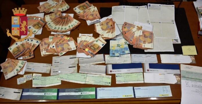 Ieri pomeriggio gli agenti del Commissariato di San Giuseppe Vesuviano hanno effettuato un controllo in traversa delle Fresie a San Giuseppe Vesuviano presso l’abitazione di un uomo dove hanno rinvenuto e sequestrato 35.650 euro di banconote false in tagli da 50 e 20 euro, 8 blocchetti di assegni circolari in bianco intestati a diversi istituti bancari e uffici postali, 3 marche da bollo, 4 carte di circolazione, di cui due con il numero poligrafico abraso e due risultate rubate, e un computer.