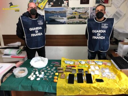 Il Comando Provinciale della Guardia di Finanza di Napoli ha tratto in arresto due persone ritenute in flagranza del reato di detenzione ai fini di spaccio di sostanze stupefacenti ed ha sequestrato 1,3 kg. tra cocaina, marijuana, hashish e c.d. “droga dello stupro”.