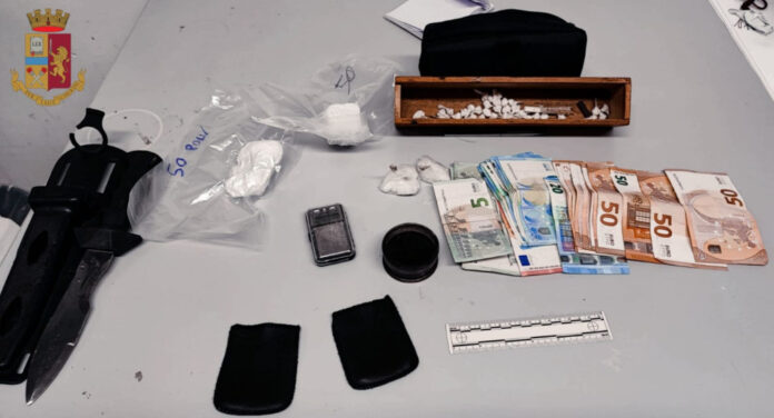 Ieri pomeriggio gli agenti del Commissariato di Giugliano-Villaricca e del Reparto Prevenzione Crimine Campania, durante un servizio di contrasto allo spaccio di sostanze stupefacenti, hanno effettuato un controllo presso un’abitazione in via Parrocchia a Marano di Napoli in cui hanno trovato due persone e 38 involucri con circa 130 grammi di cocaina, due stecche del peso di 1,5 grammi circa di hashish, un bilancino di precisione, un trita erba, un coltello con la lama della lunghezza di 15 cm, un taglierino, diverso materiale per il confezionamento della droga, 3 cellulari e 1374 euro.