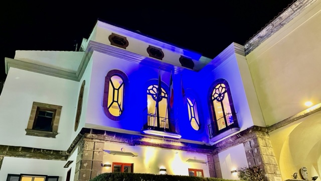 Il Palazzo Municipale di Sorrento si illumina, da questa sera, con i colori blu e giallo della bandiera dell’Ucraina.