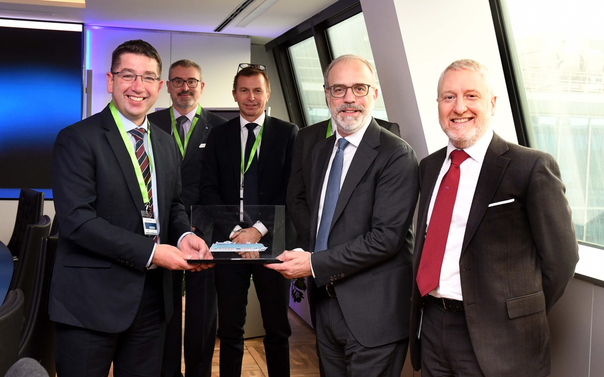 L’amministratore delegato di LR Group, Nick Brown, oggi ha omaggiato Giorgio Gomiero e Pierluigi Punter, rispettivamente Direttore Operations e Responsabile Progettazione di Concetto della Divisione Navi Mercantili di Fincantieri, di una targa commemorativa raffigurante la Discovery Princess, durante un incontro avvenuto presso la sede di Trieste dell’azienda.