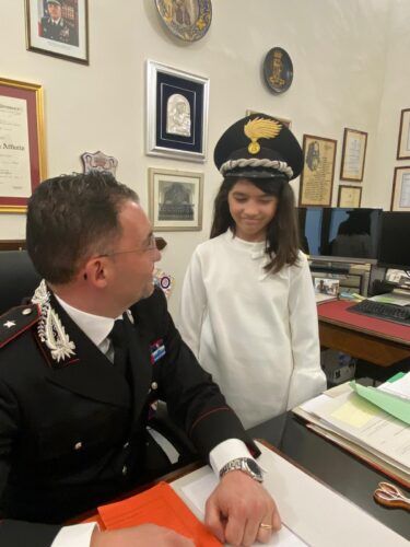 “Ho 7 anni e papà fa il Carabiniere!”. Quando gli chiediamo cosa pensa del suo lavoro risponde: “E’ bello perché mi racconta tante cose, tante storie. Anche se a volte esagera! Però è davvero forte!” Lo dice annuendo, il padre, invece, vorrebbe sprofondare.
