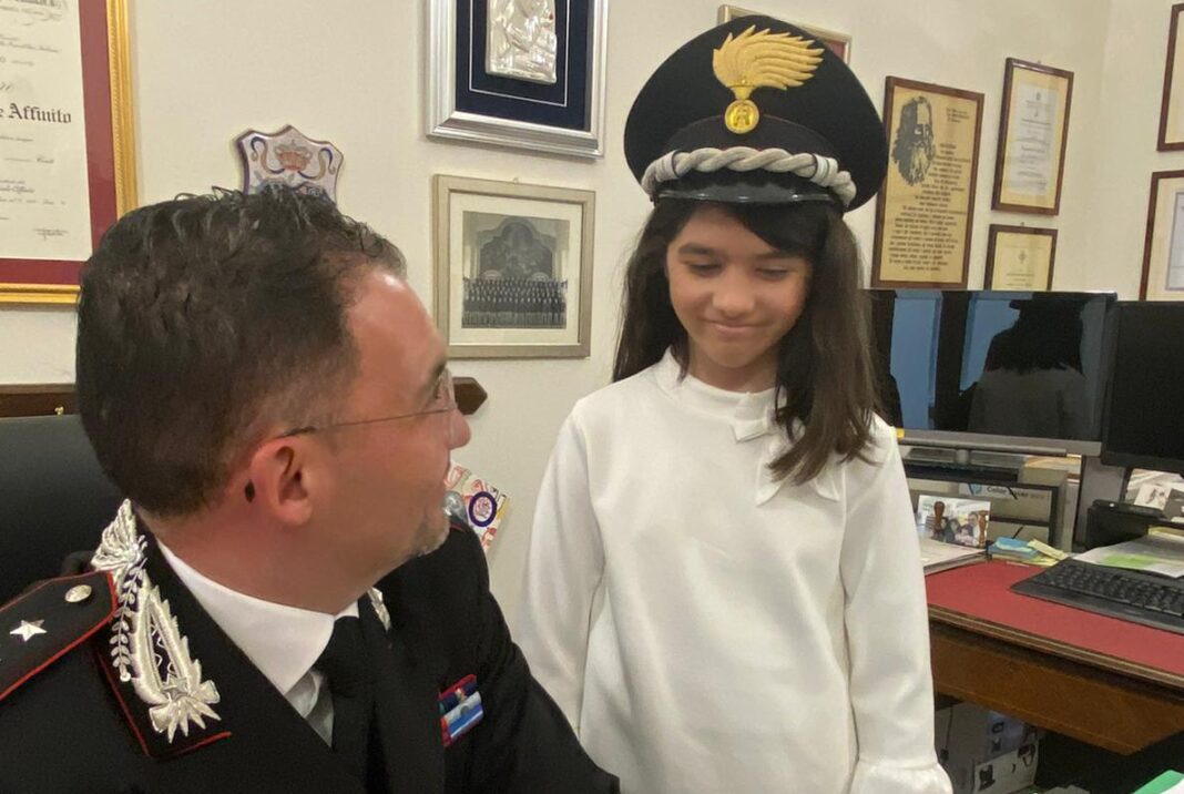 Beatrice, invece, prima di rispondere osserva il papà – anche lui Maresciallo dei Carabinieri – e legge nei suoi occhi l’imbarazzo. Ha 7 anni e non ha dubbi sul fatto che il padre arresta i ladri e li porta in carcere. “Non si ruba, è sbagliato rubare! Mio papà quando vede un ladro lo arresta, con le manette! Volevo giocarci con le manette ma papà mi ha sgridato. Una volta ho messo il suo cappello da Carabiniere ma lui non se n’è accorto.”