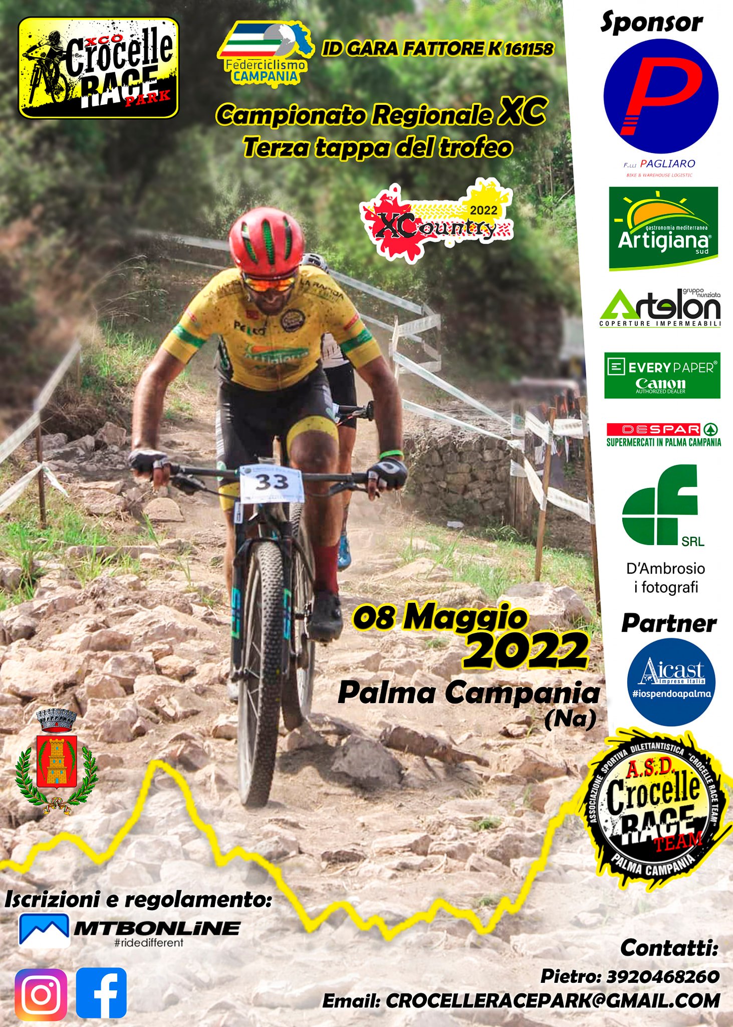 Il trail naturale che attraversa il Bosco Crocelle nel comune di Palma Campania è situato intorno alle vasche di drenaggio ai piedi del Monte Sant’Angelo e si adatta perfettamente per lo svolgimento di una gara di cross country: 4,3 chilometri con 100 metri di dislivello a giro interamente in ghiaia e sterrato con tante piccole salite e discese, molto veloce da far rimanere senza fiato e l’inserimento di pedane, pali trasversali, rock garden che rendono il tracciato molto tecnico, quasi come se fosse un parco giochi!