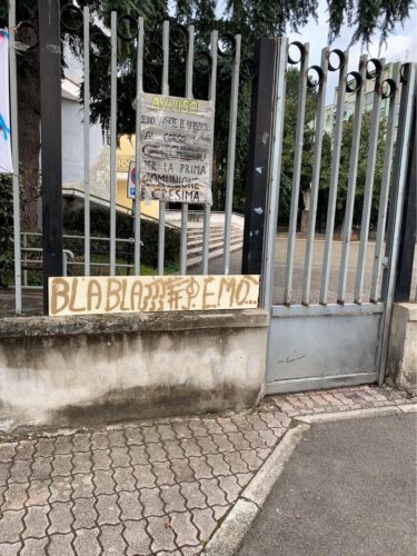 Il cartello apposto davanti al cancello recita: “Bla, bla, bla. Pe mo”, ovvero “per ora”. Don Patriciello da pochi giorni è sotto scorta. Mercoledì scorso la commissione antimafia si riunì proprio nella sua parrocchia. Il senatore Sandro Ruotolo del Gruppo Misto ha detto: “Loro non demordono ma neanche noi. Loro continuano a sfidarci”.
