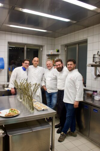 La serata eccezionale è stata deliziata dai piatti di importanti chef quali Carmine Mazza del ristorante L’Accanto, Peppe Guida dell’Antica Osteria Nonna Rosa, il pizzaiolo Ferdinando Iazzetta di Saporì.