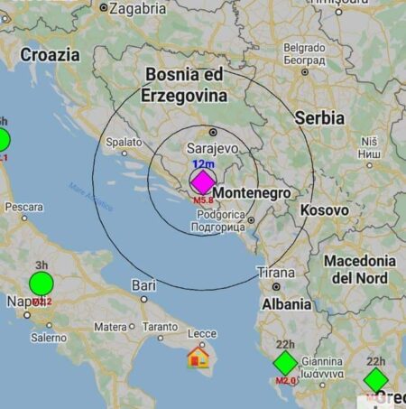 La scossa di questa sera è stata comunque avvertita in tutta l’area dei Balcani, con la maggior parte delle segnalazioni che si sono concentrate nell’area meridionale della Croazia e della Bosnia, in quella settentrionale del Montenegro e in quella occidentale della Serbia. Nel nostro paese invece, la maggior parte delle segnalazioni sono arrivate lungo il lato adriatico della penisola, ovvero dal Friuli alla Puglia. Il terremoto è stato però avvertito anche in tutte le regioni centro-meridionali dell’Italia.