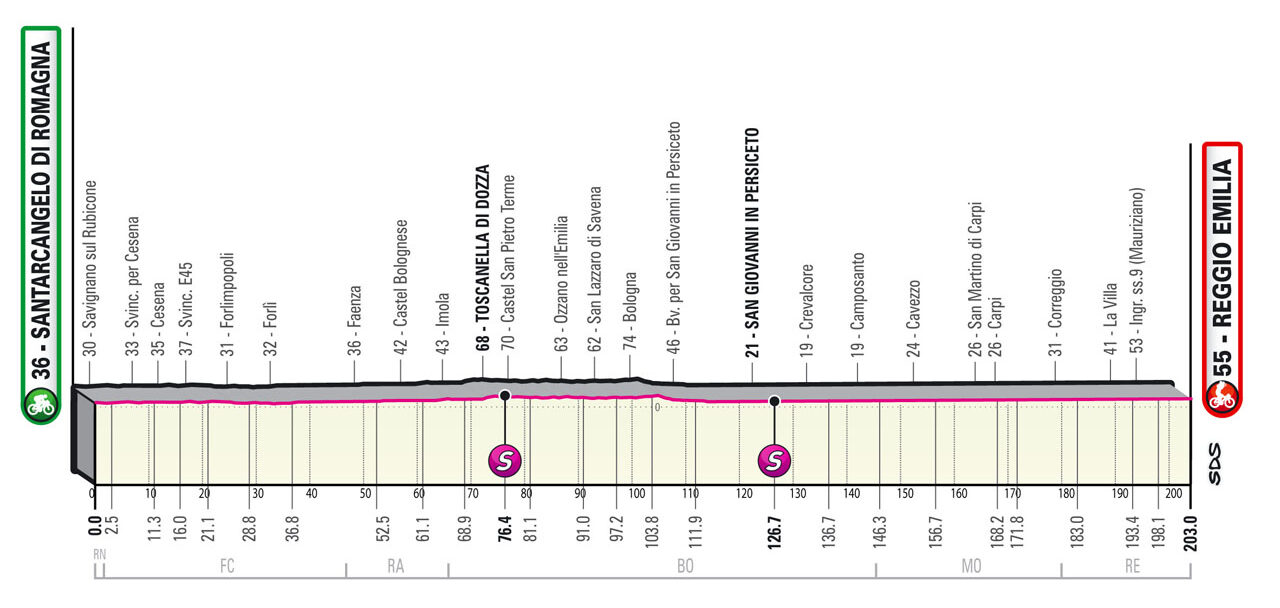 11° tappa: Santarcangelo di Romagna-Reggio Emilia (203 km)