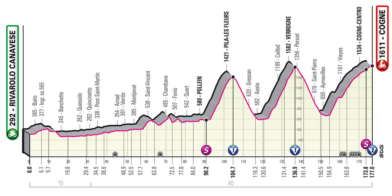 15° tappa: Rivarolo Canavese-Cogne (178 km)