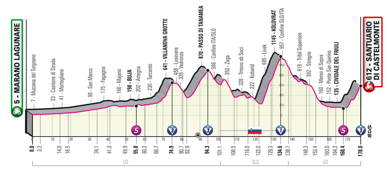 19° tappa: Marano Lagunare-Santuario di Castelmonte (177 km)