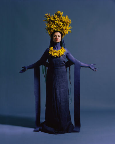 Il progetto presenta un corpus di 9 immagini stampate su teli di grandi dimensioni, bandiere che sventolano libere fra i balconi e i lampioni, creando un’esperienza di impatto e unione nel cuore del centro storico di Sorrento. Lo spettatore è invitato ad attraversare il corso principale per incontrare gli sguardi, i simboli, le storie di otto donne ucraine rappresentate come icone laiche, Sante quotidiane portatrici di un messaggio di pace, orgoglio e dignità, più un’immagine, la nona, un autoscatto dell’artista che rappresenta il suo modo di combattere la guerra con l’arte e la cultura.