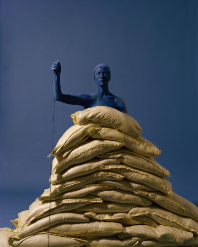 Il titolo della mostra, St. Javelin, è il nome di una Santa nata in guerra, ispirata al missile “Javelin” mandato in Ucraina in sostegno della resistenza, diventata il simbolo di una Madonna protettrice. Proprio il paradosso di una madre che tiene in mano un’arma, la morte invece della vita, è stato il motore che ha avvicinato Julia Krahn alle donne ucraine. L’unica “arma” che l’artista intende usare è l’empatia, da qui la scelta di inserire un autoscatto nel progetto, dove lei stessa ha in mano il suo strumento per combattere la guerra, il pulsante della macchina fotografica.