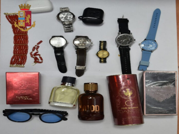 Dopo poco, i poliziotti hanno li hanno visti uscire dallo stabile con due grosse borse, uno zainetto ed una borsa porta pc e li hanno bloccati trovandoli in possesso, oltre che di diversi arnesi atti allo scasso, di vari pezzi di argenteria, gioielli, profumi, orologi, borse e magliette di noti marchi ed hanno accertato che li avevano appena rubati da un appartamento la cui proprietaria era al momento assente; inoltre, gli operatori, in una delle due auto, hanno rinvenuto una smerigliatrice e un filo elettrico della lunghezza di 5 metri completo di attacchi.