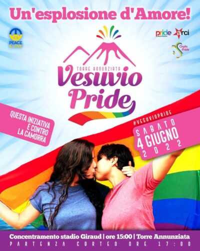 Sarà “Un’esplosione d’Amore” il Vesuvio Pride di Torre Annunziata, previsto per il 4 giugno 2022, fortemente voluto dall’Associazione “Pride Vesuvio Rainbow” di Torre Annunziata (sede in via Fusco, n.1) e che, fra le tante rivendicazioni civili e sociali, si configura come un’iniziativa contro la camorra.