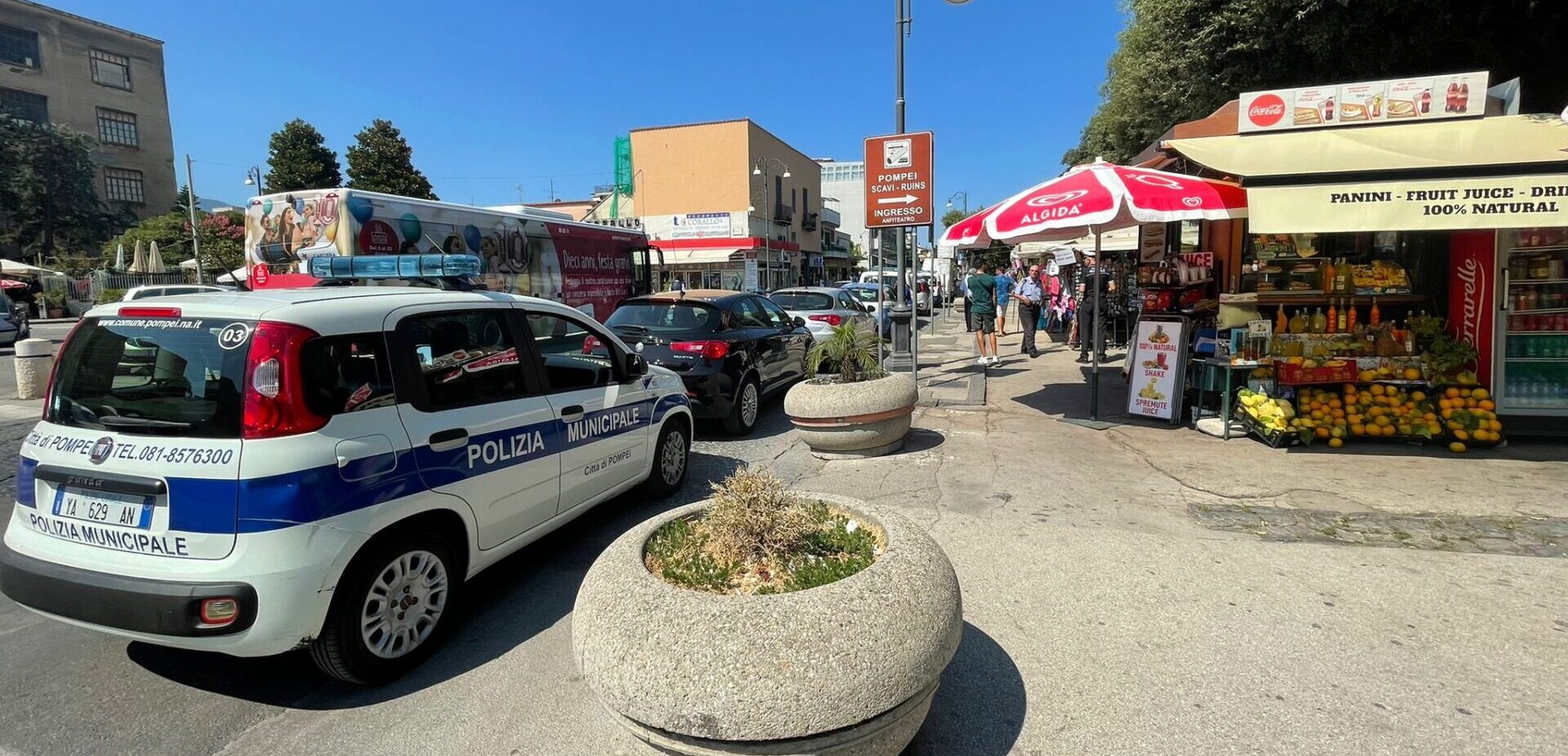 Scavi, ancora un blitz contro le bancarelle abusive e gli chalet “irregolari” per turisti: raffica di multe e sequestri. I controlli straordinari sono scattati ieri mattina. Per circa cinque ore gli uomini della polizia municipale – agli ordini del comandante Gaetano Petrocelli – coadiuvati dagli agenti della polizia di stato e dai carabinieri hanno letteralmente passato al setaccio tutta l’area di Piazza Immacolata, quella più vicina all’ingresso principale degli Scavi di Pompei.