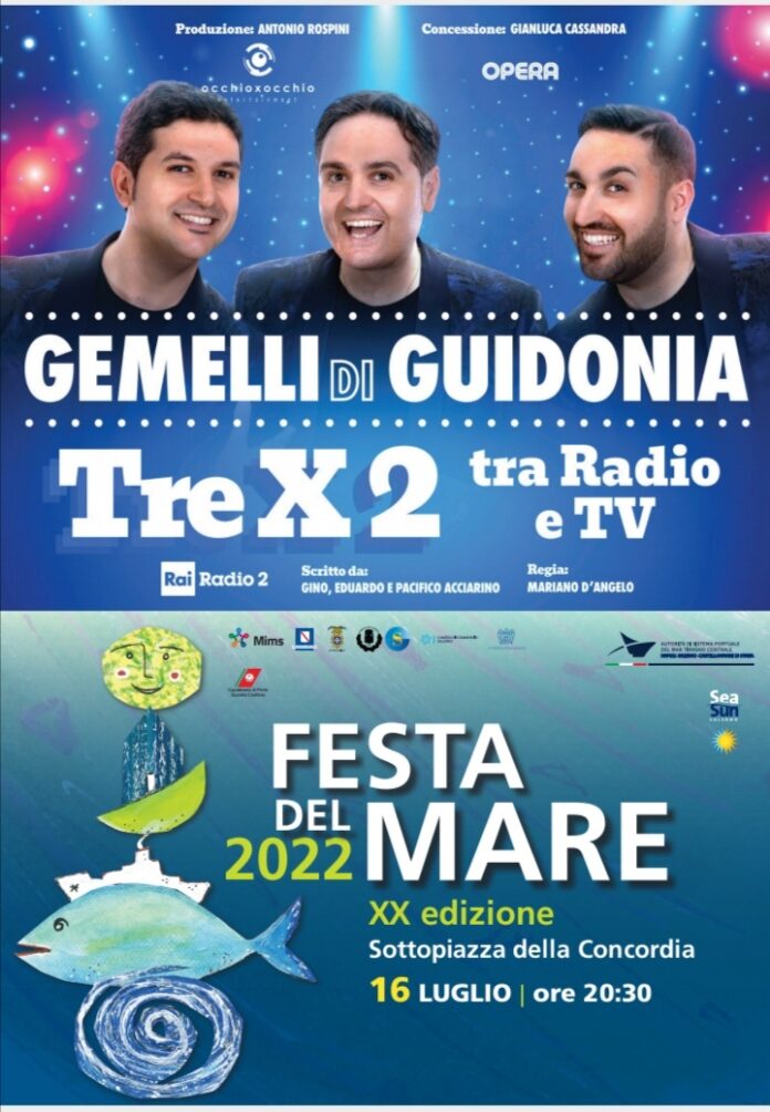 A seguire lo spettacolo “Trex2 tra Radio e tv” dei Gemelli di Guidonia, ovvero i fratelli Pacifico, Gino ed Eduardo Acciarino, di origine napoletana che vivono a Roma da oltre dieci anni e girano l’Italia con spettacoli frizzanti e coinvolgenti. Nel loro spettacolo dal vivo, offriranno al pubblico gag, canzoni, imitazioni e i tanti personaggi della loro trasmissione di successo su Rai Radio 2.