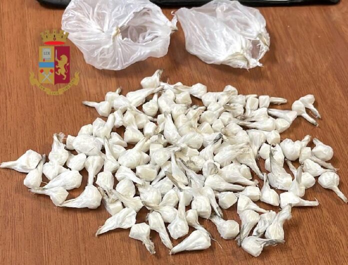 I poliziotti lo hanno raggiunto e bloccato ed hanno trovato, all’interno delle bustine, 122 involucri contenenti circa 21.16 grammi di cocaina.