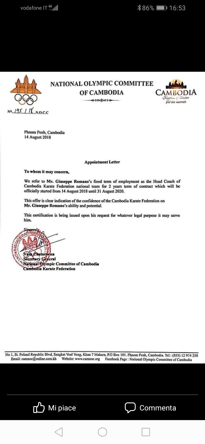 L’esperienza più entusiasmante, unica nel suo campo, quella di coach con licenza mondiale Wkf – Comitato Internazionale. Romano allena nazionali di quattro continenti: Asia (Filippine, India Uzbekistan e Cambogia), Europa (Kosovo, Moldavia), Africa (Libya, Zimbabwe e Botswana), America (Bolivia).