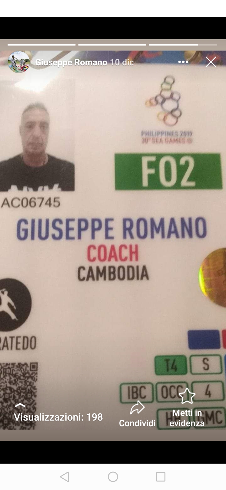 Proprio quest’anno il maestro Giuseppe compie vent’anni di esperienza internazionale: la partecipazione a 4 edizioni dei Sea Games 2003-2005-2007 e 2019, conquistando 34 medaglie e due Asian Games 2002 e 2006 con 4 medaglie, 1 campionato Asiatico cadetti, juniores e under 21 e seniores nel 2019 Malesia e Uzbekistan con 1 medaglia di bronzo storica per la nazionale Cambogiana, 4 mondiali wkf 2006, 2010, 2016 e 2017 e 2 qualificazioni olimpiche Sofia 2018 e Croazia 2018 con Mohamed Ali Hussain della Botswana. Con 500 medaglie conquistate in Europa e nel Mondo.