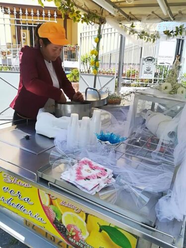 Rispetto alla classica granita a limone ho deciso di introdurre anche delle varianti usando degli sciroppi. Ho avuto inoltre l’intuizione di estendere gli orari di lavoro anche nelle ore che avrebbero dovuto essere meno solide e ho iniziato a partecipare agli eventi, come matrimoni fuori le chiese ed altro. Alla fine, proprio gli eventi hanno fatto la differenza e ci hanno fatto conoscere portando il nome di Michele Show a notorietà.