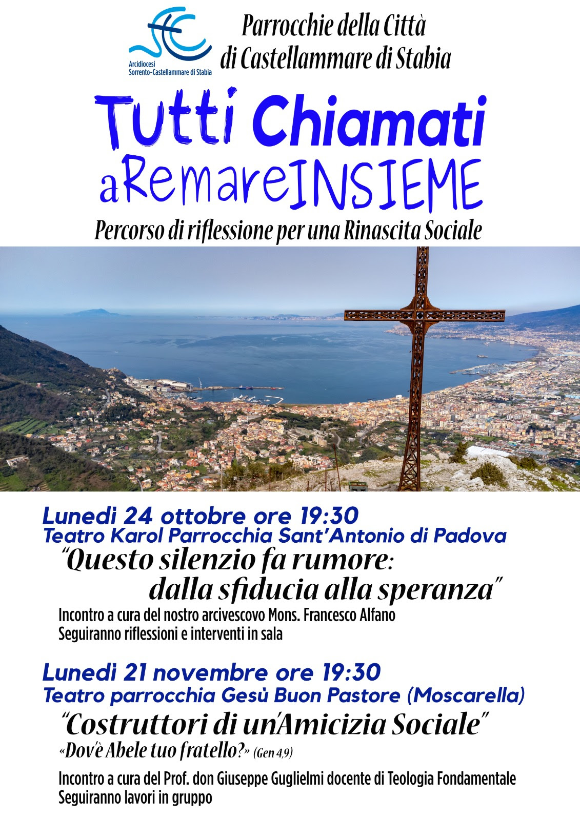 Quelle parole di preoccupazione trovano oggi risposta e concretezza in “Tutti Chiamati a Remare Insieme” un Percorso di Riflessione per una Rinascita Sociale, proposto alla comunità stabiese dai parroci: “Siamo convinti che in tanti nella nostra città desideriamo essere operatori di una ricostruzione del tessuto sociale fondata sulla realizzazione di una rinnovata moralità civile nella solidarietà diffusa. Il motto che caratterizza la nostra città è un invito alla speranza ma è anche un monito per un comune impegno”.