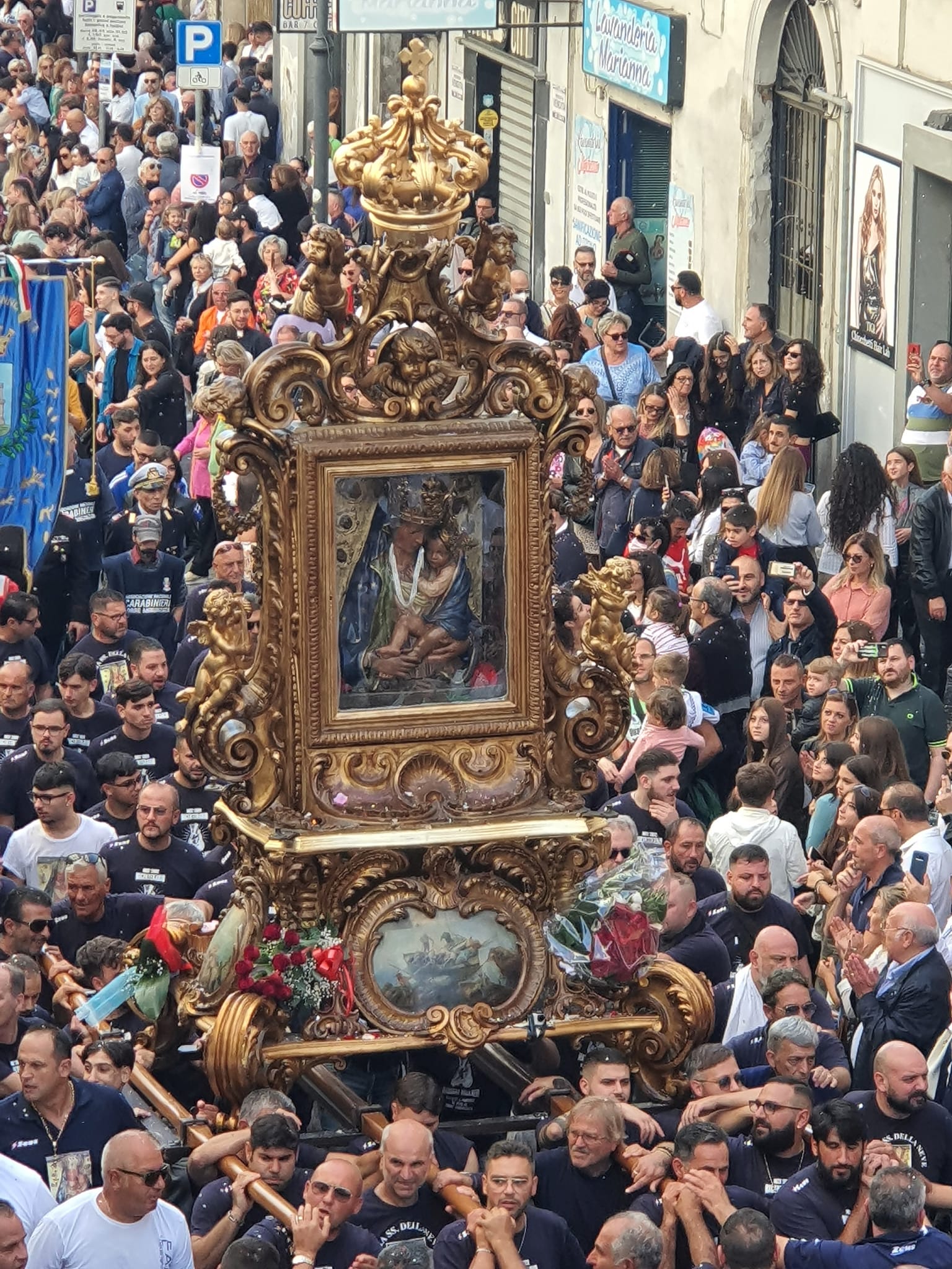 Oggi dopo due anni dalla pandemia e duecento anni dal miracolo s’è ripetuta la processione della Madonna della neve, sul suo trono portato a spalla dai suoi pescatori. Doveva essere una festa minima, senza luminarie né concerti e con poche bancarelle… è stata invece la grande festa dei Torresi e non solo. Da Eboli al napoletano sono accorsi tanti fedeli a questo enorme corteo e si stima che in ampiamente oltre centomila abbiano gonfiato le strade della città, dimostrando il loro amore verso la loro Madre Celeste che non ha bisogno di luminarie né d’altro se non dell’amore dei suoi figli.