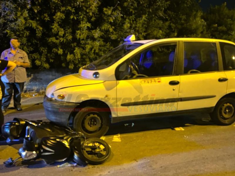 All’altezza dell’incrocio con via Gesuiti un Taxi del Comune di Napoli, fuori servizio, ha impattato violentemente con lo scooter elettrico che saliva verso Boscotrecase trascinandolo per quattro o cinque metri. A bordo del mezzo a due ruote un giovane, 23 anni, titolare di un negozio di frutta e verdura di piazza Annunziatella a Boscotrecase, che aveva appena effettuato una consegna nelle palazzine della zona.