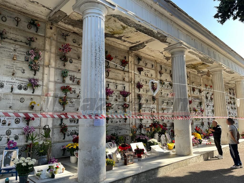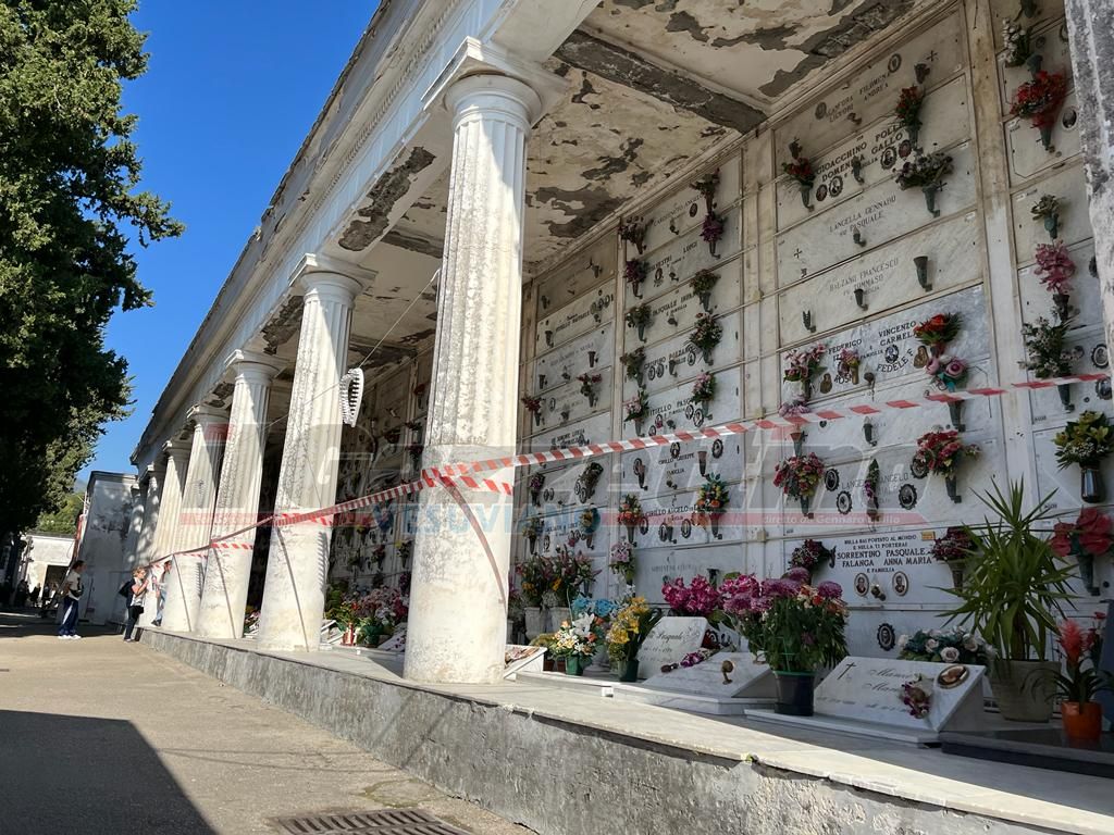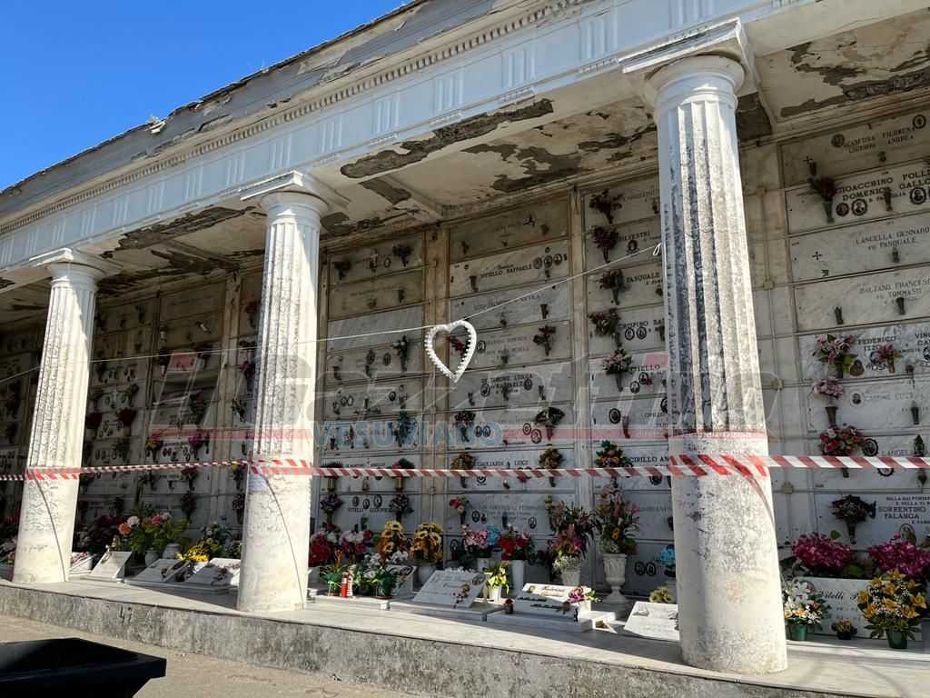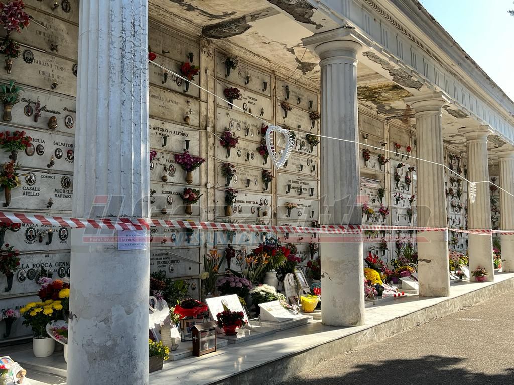 Ebbene a Bosco-Trecase, questa “crianza” non è concessa a quanti hanno i propri parenti nelle nicchie subito a sinistra, nel muro perimetrale del camposanto. Una striscia bianca e rossa, di quelle usate dalle forze dell’ordine per delimitare i delitti e una laconica comunicazione affissa alle colonne che reggono il tetto dell’ala in questione, chiariscono che “Per ragioni di sicurezza è inibito l’accesso all’area”.