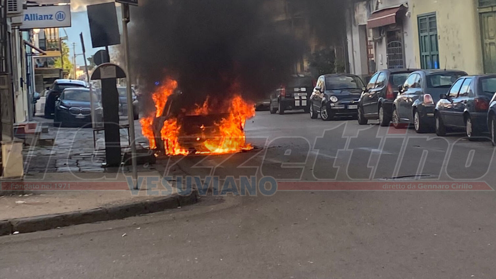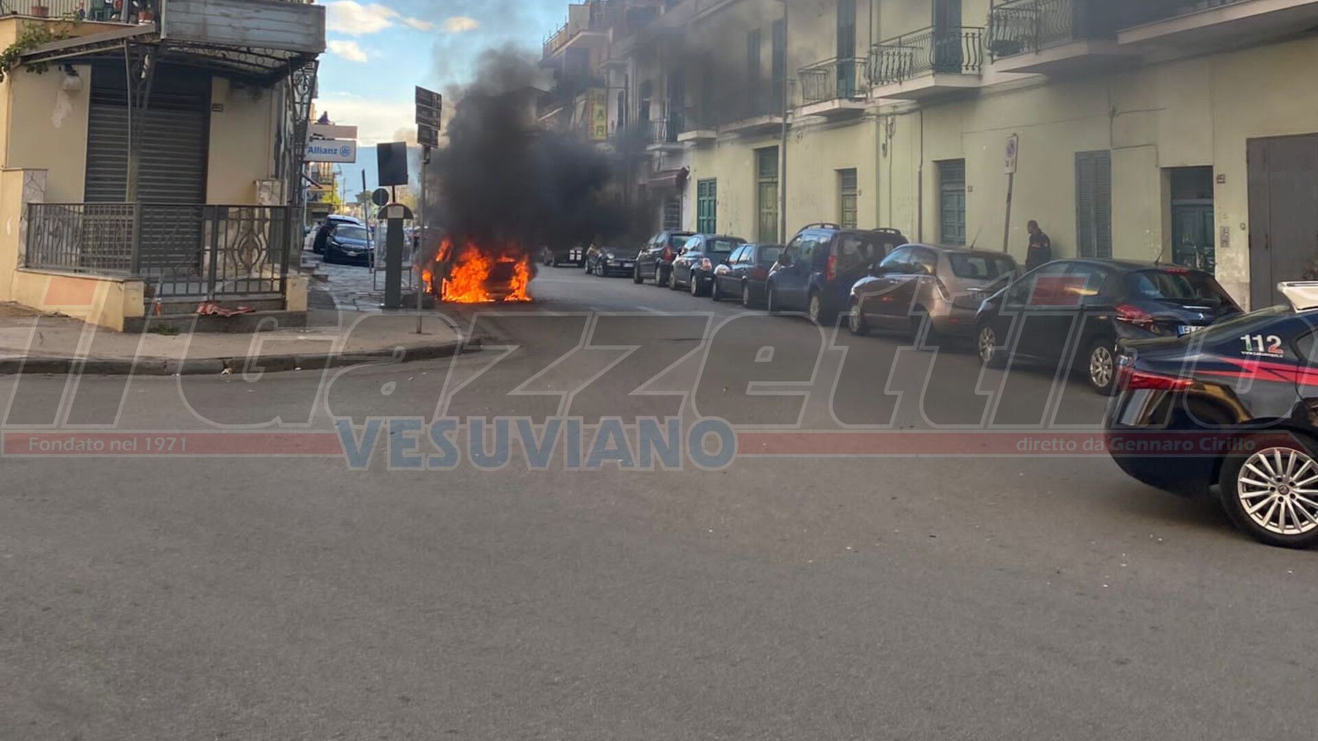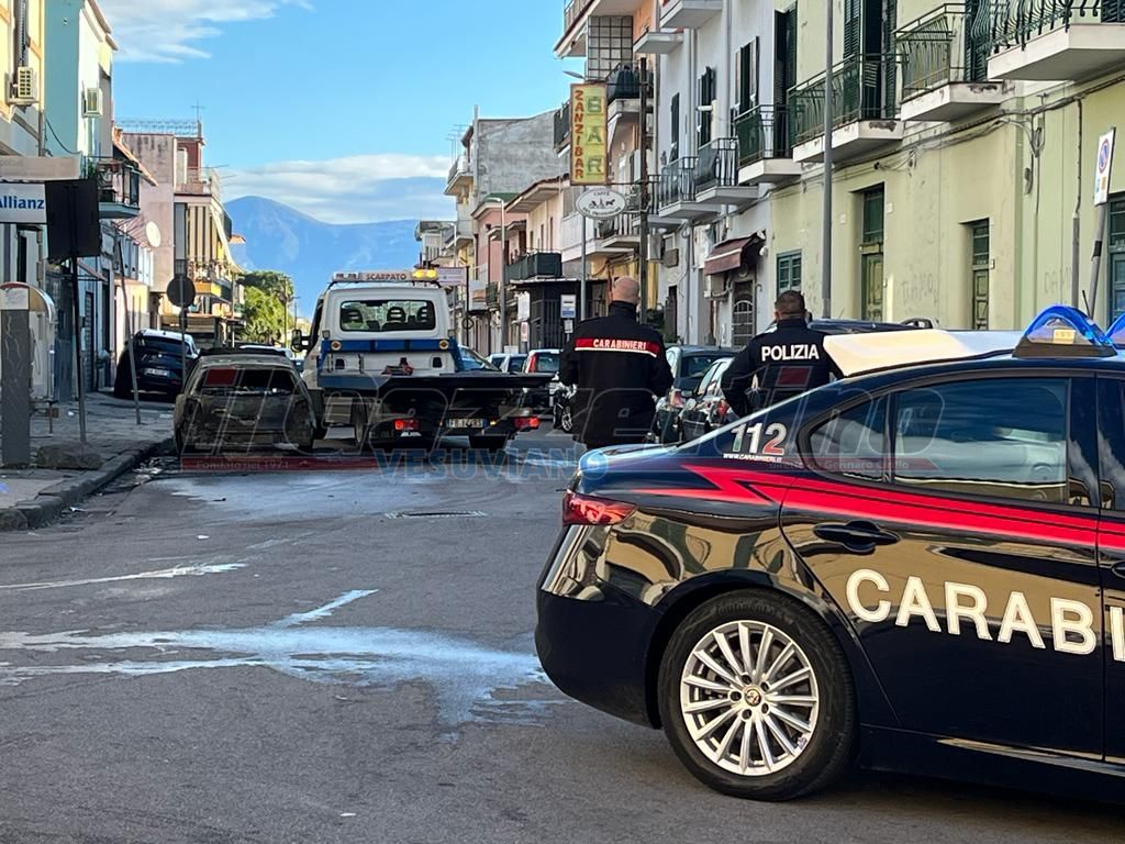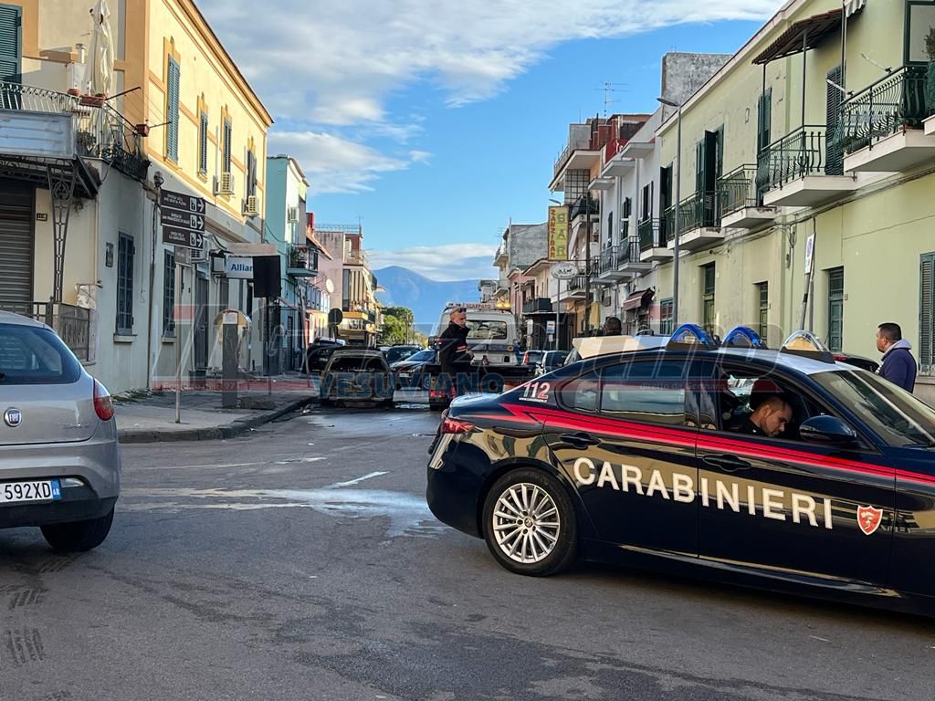 Boscotrecase, auto in fiamme In via nazionale: Carabinieri e Polizia sul posto