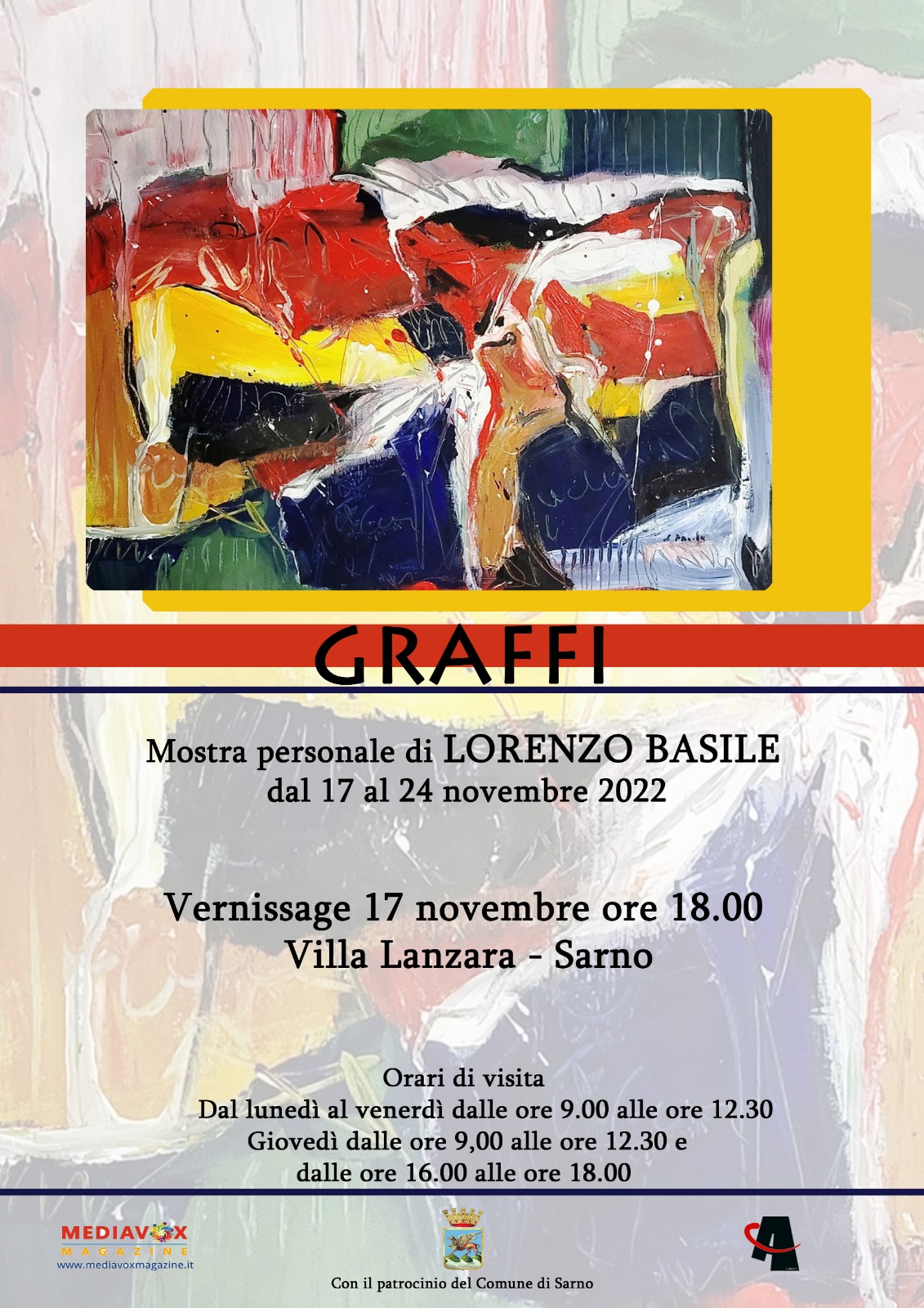 La personale di pittura dell’artista e poeta Lorenzo Basile, dal titolo “Graffi”, si compone di trentadue dipinti su tela, realizzati con la tecnica dell’acrilico, che possono essere definiti la sintesi di un percorso creativo elaborato dall’artista in un ciclo pittorico sviluppatosi negli anni a cavallo tra il 2021 ed il 2022.