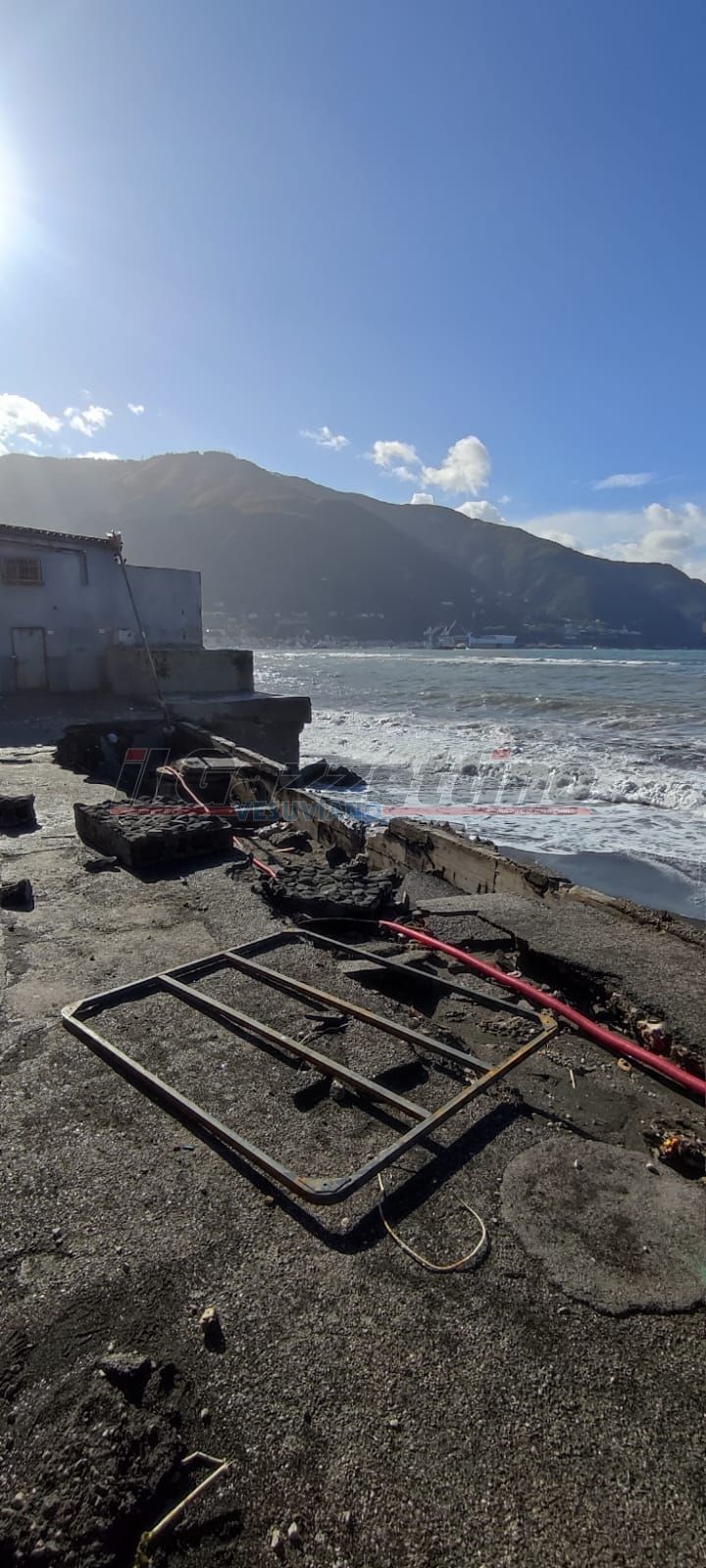 Possiamo vedere, dalle fotografie scattate stamattina a Castellammare di Stabia, il materiale che le onde del mare hanno spinto dalla spiaggia all’area dedicata al passeggio del corso Giuseppe Garibaldi.