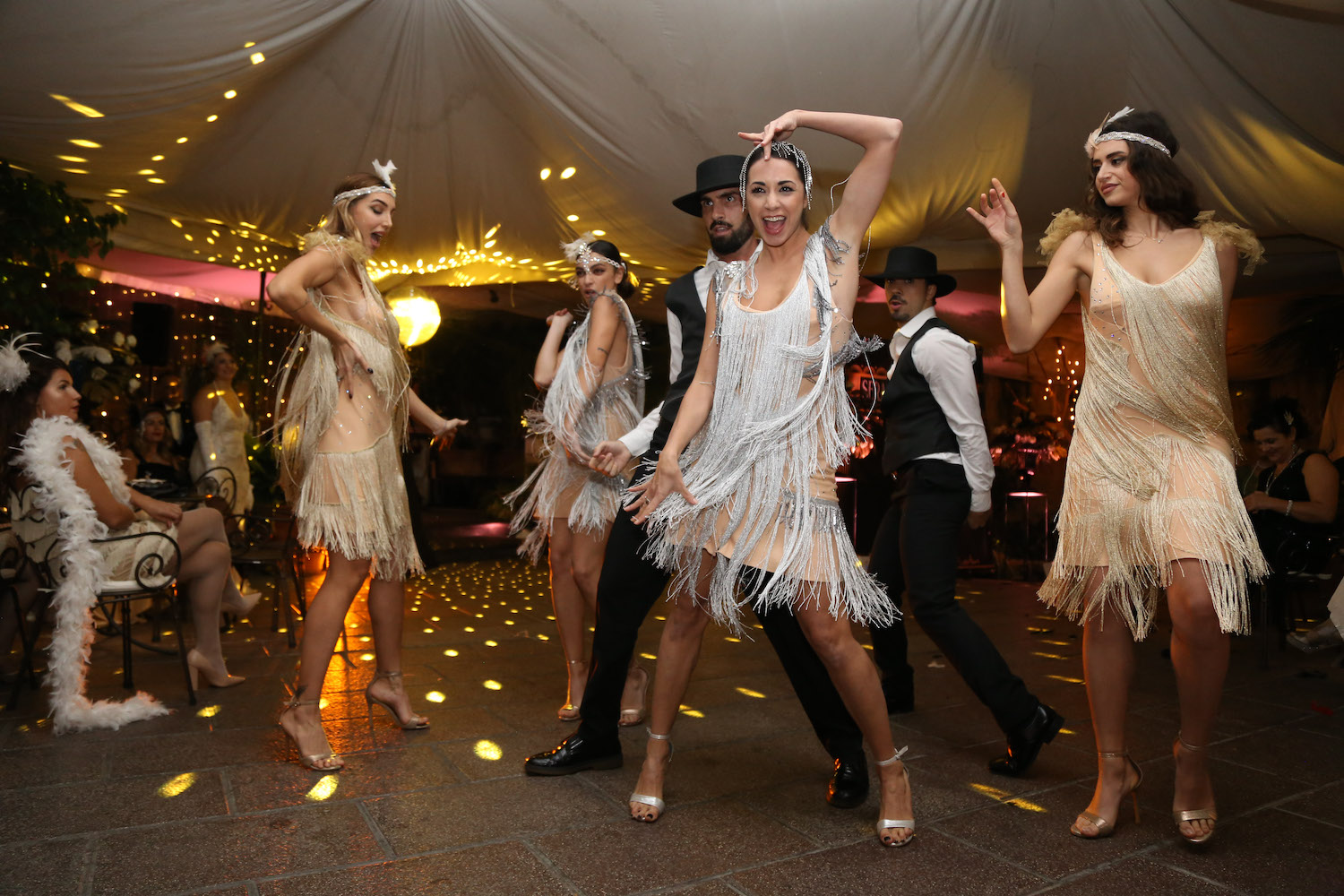 Un trionfo di classe ed eleganza, catapultati negli anni ’30 tra abiti leggerissimi di raso e chiffon di seta, tra lustrini e piume, sinuosi swing, danze e musica partenopea: è stato tutto questo e molto altro la “Serata Gatsby – Atmosfere napoletane anni ’30” andata in scena con successo nella cornice liberty di Villa Marinella nel capoluogo campano.