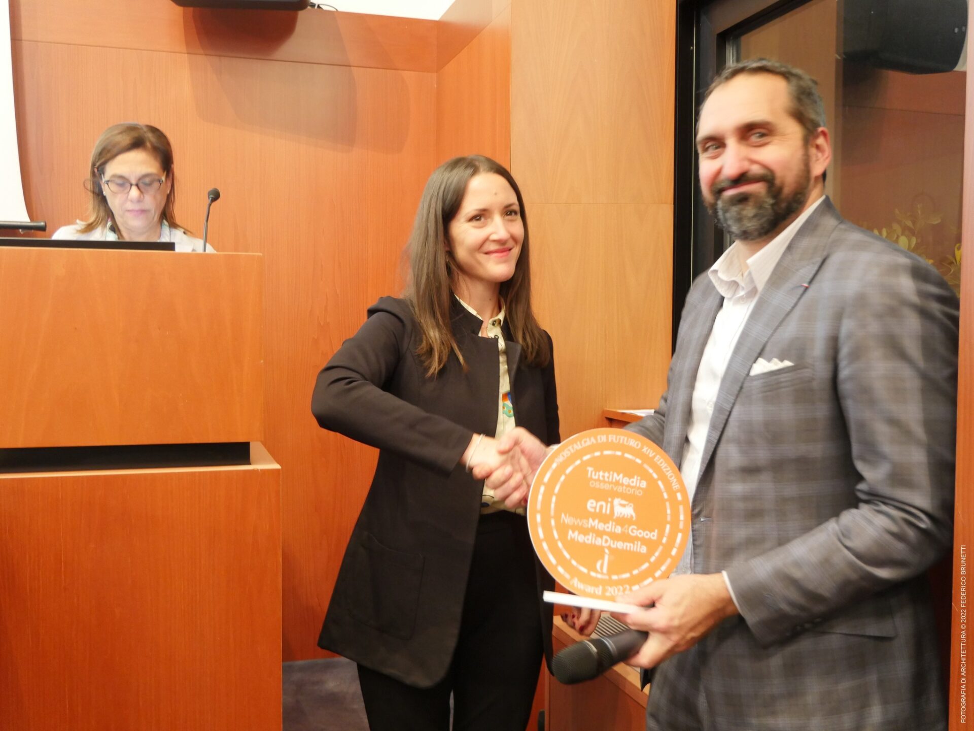 Dopo il dibattito si è svolta la cerimonia di premiazione con Salvo Iavarone (Presidente Confinternational) che ha ricevuto anche un Premio speciale per il ruolo che il metaverso può avere nell’unire le persone distanti come i migranti. La premiazione è dedicata a Innovazione nella Comunicazione per ricordare Giovanni Giovannini, storico presidente Fieg che usava ripetere: “Tra millennio e millennio sta cambiando, nel giro di una generazione, il modo di informare, comunicare, vivere, per l’effetto congiunto di tecnologie in fulminea evoluzione”.