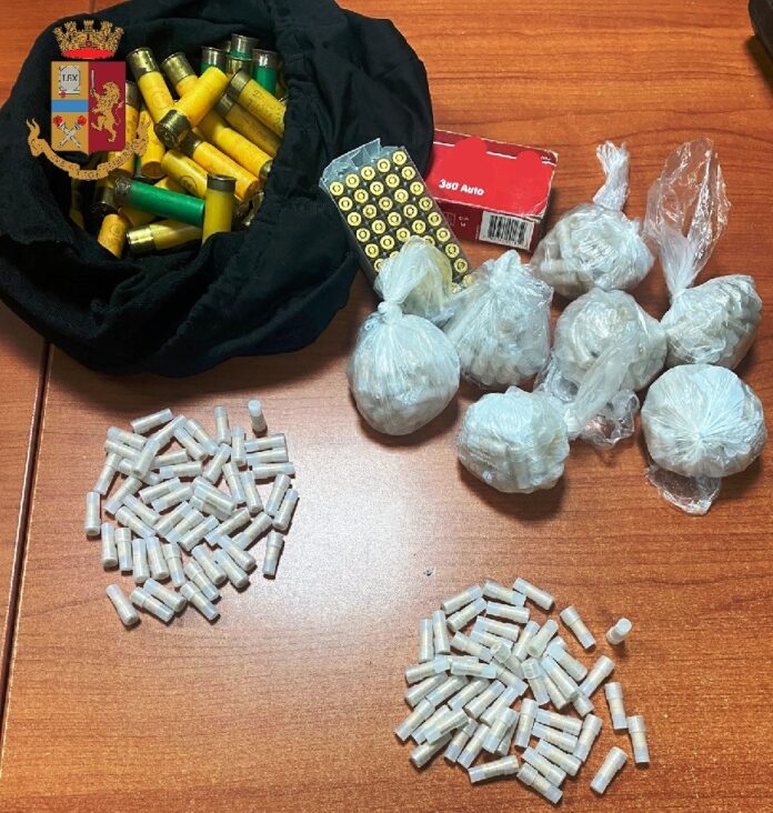 Gli operatori hanno rinvenuto, in una cabina elettrica accanto all’indumento lasciato a terra, 450 cilindretti con circa 415 grammi di eroina e, nella cabina elettrica dell’ascensore, 94 cartucce di vario calibro.