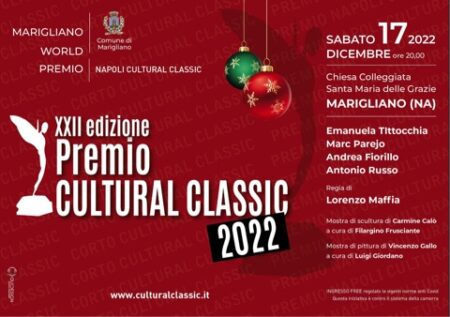 Da Diego De Silva a Gianni Simioli, passando per i più autorevoli volti di arte, cultura e scienza: tutto pronto per la XXII edizione del Premio Festival Napoli Cultural Classic World, che si svolgerà sabato 17 dicembre alle ore 20 nella storica cornice della Collegiata Santa Maria delle Grazie a Marigliano.