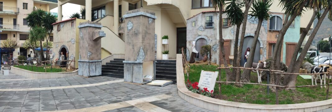 Una delle novità che abbiamo potuto osservare nella cittadina di Sant’Antonio Abate? Il Comune per questo Natale 2022 si è trasformato in un vero e proprio Presepe. Insomma, guardando piazza principale del paese, sembra che la struttura esterna dell’installazione natalizia inglobi completamente la Casa Comunale. Avvicinandoci abbiamo poi riscontrato che gli allestimenti sono ben visibili ma posizionati all’esterno dell’area d’ingresso dell’edificio.