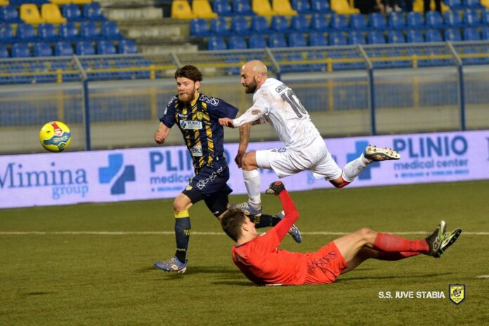 La prima chance è di marca stabiese: al 9′ D’Agostino di testa in area mette di poco alto sulla traversa. Sono le prove tecniche del gol della Juve Stabia: al 10′ è Bentivegna a realizzare con un bel sinistro in area, dopo aver raccolto una respinta della difesa ospite.
